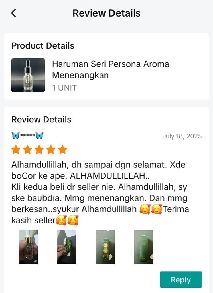 Tidak seperti perfume lain, Wangian Raja Cenuai Perindu ini merupakan wangian yang telah di syifakan dengan ayat-ayat Al-Quran dan Zikir-zikir khas untuk menarik Aura Positif dalam diri si pemakai