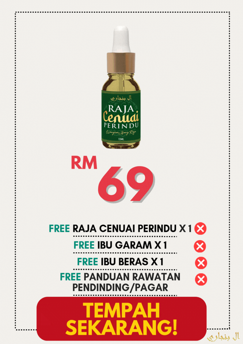 Wangian Raja Cenuai Perindu ini adalah wangian yang dapat membantu anda untuk serlahkan Aura Positif untuk menaikkan karisma diri, kasih sayang serta memudahkan perjalanan perniagaan dan kehidupan anda InsyaAllah.